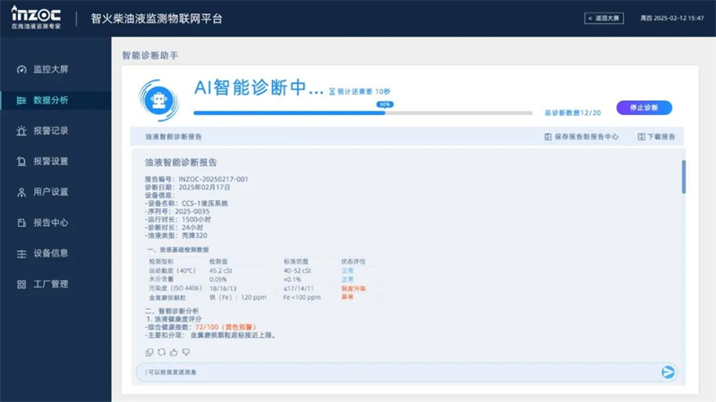 同時也標志著油液監測行業迎來了首個AI診斷大模型的時代。想要率先體驗AI智能診斷功能,敬請關注我們的官方微信公眾號,即可及時解鎖更多油液云平臺功能!