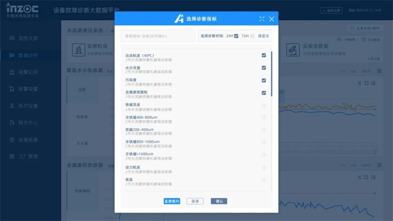 ■ 篩選指標(biāo):自 由選擇振動(dòng)、粘度、水分含量、金屬顆粒濃度等關(guān)鍵參數(shù);